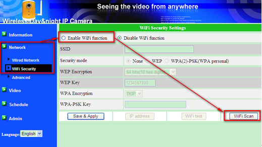 5. Enable WiFi Function( Network -> WiFi Security -> Enable WiFi Function )